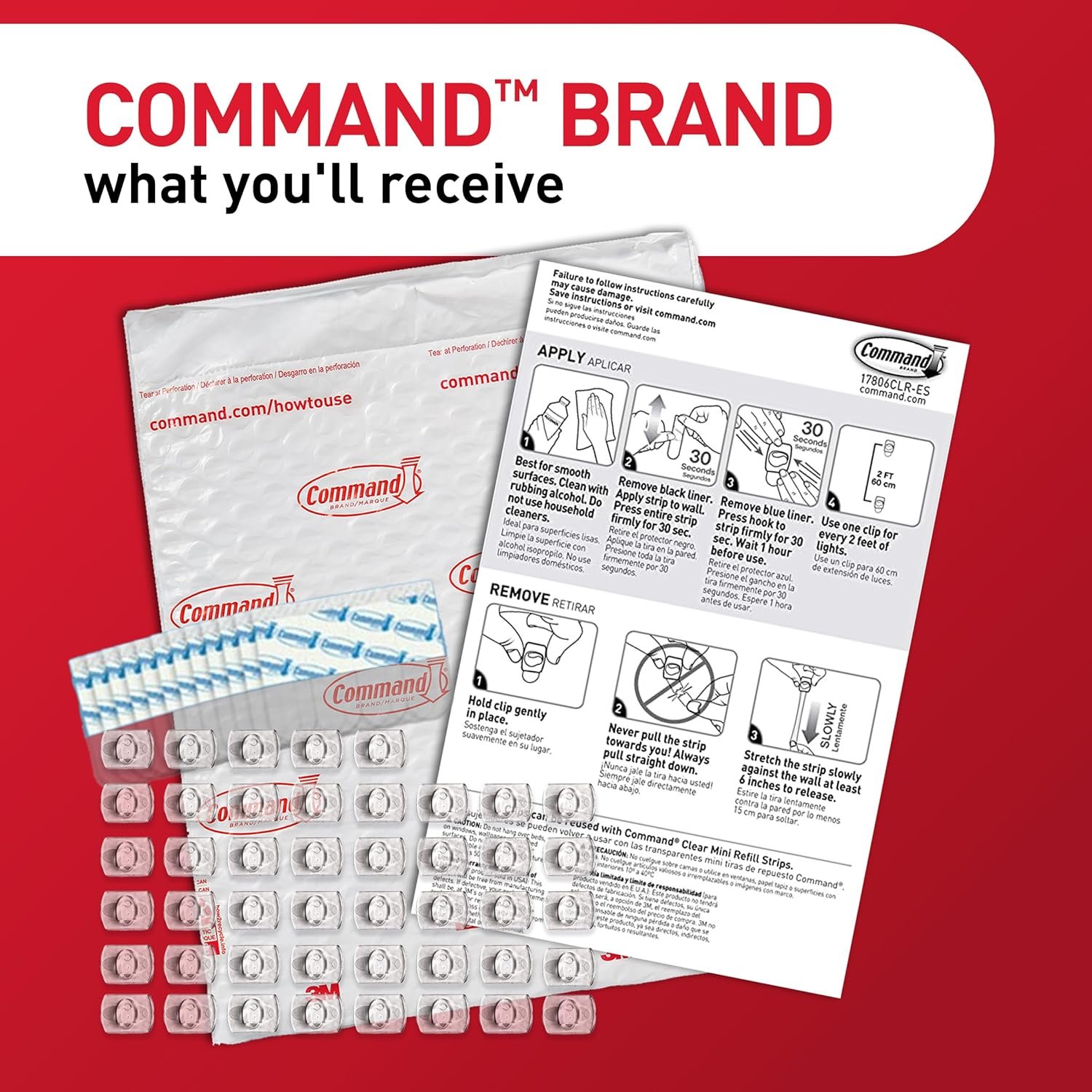 Brighten your space effortlessly with Command Indoor Mini Light Clips by Command Store. This pack includes 45 clear clips and 54 Command Strips, perfect for damage-free hanging of Christmas lights or managing cables on a variety of smooth surfaces. Designed for easy use—just one clip is needed for every two feet of lights—these clips leave no residue and work well on painted walls, glass, wood, or tile. Ideal for renters, dorm rooms, or anyone seeking hassle-free seasonal decorating solutions.
