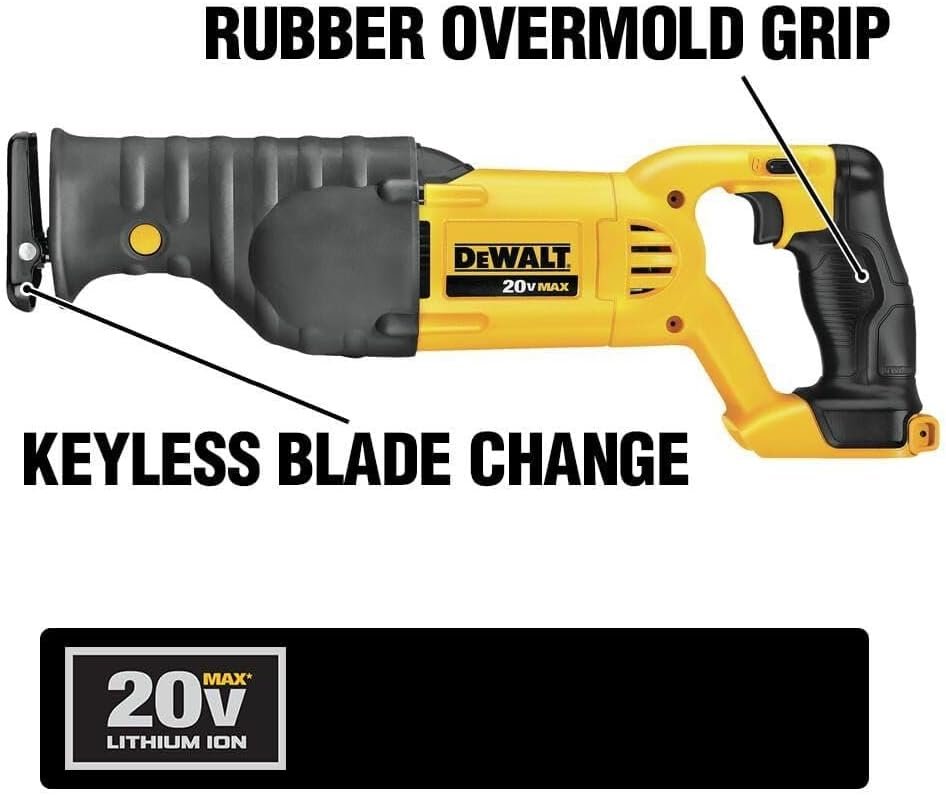 Experience efficient and versatile cutting with the DEWALT 20V MAX Reciprocating Saw. Offering a speedy 3,000 strokes per minute and a 4-position blade clamp for enhanced versatility, this cordless power tool is perfect for demanding wood-cutting tasks. The variable speed trigger, pivoting shoe, and rubber over-molded grip ensure precision and comfort, while the durable, double oil-sealed shaft promises long-lasting performance. Trust DEWALT for reliability and enjoy peace of mind with a 3-year limited warranty.