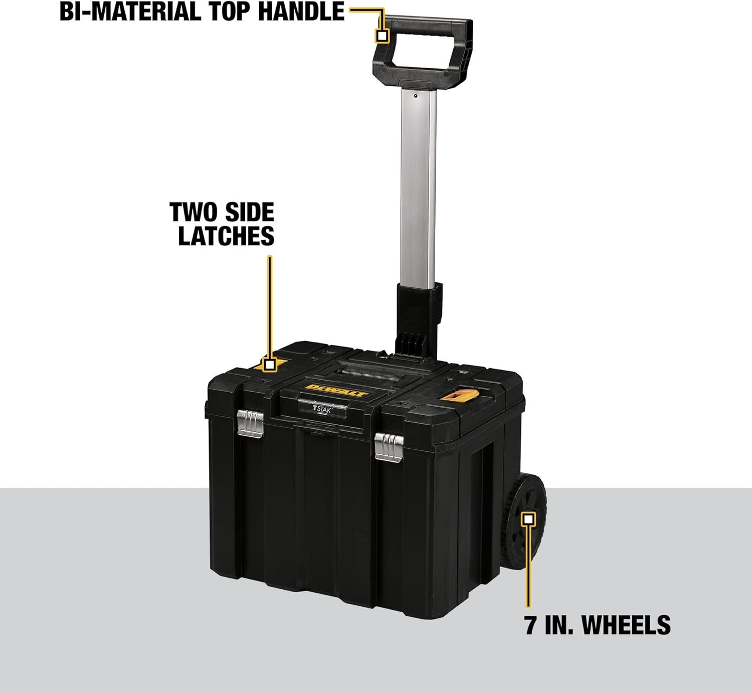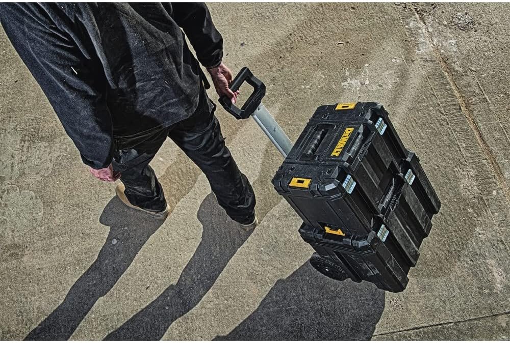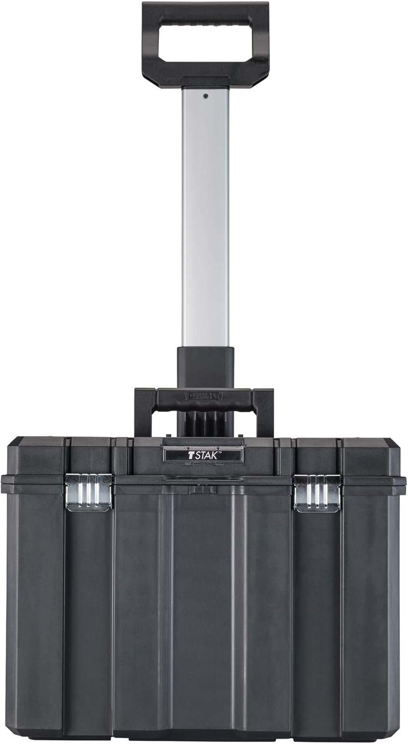 The DEWALT Tool Box with Wheels (DWST17820) combines maximum storage volume with easy portability, thanks to its large, deep, stackable design and a durable metal-plastic telescopic handle. This portable carrier features 7-inch wheels and anti-rust metal latches for long-lasting, rugged performance. With its push-button handle operation and bi-material top handle for comfortable carrying, DEWALT ensures your tools stay organized and accessible on any job site. Perfect for both DIYers and professionals, this rolling tool box is a smart investment for anyone who values reliability and convenience.