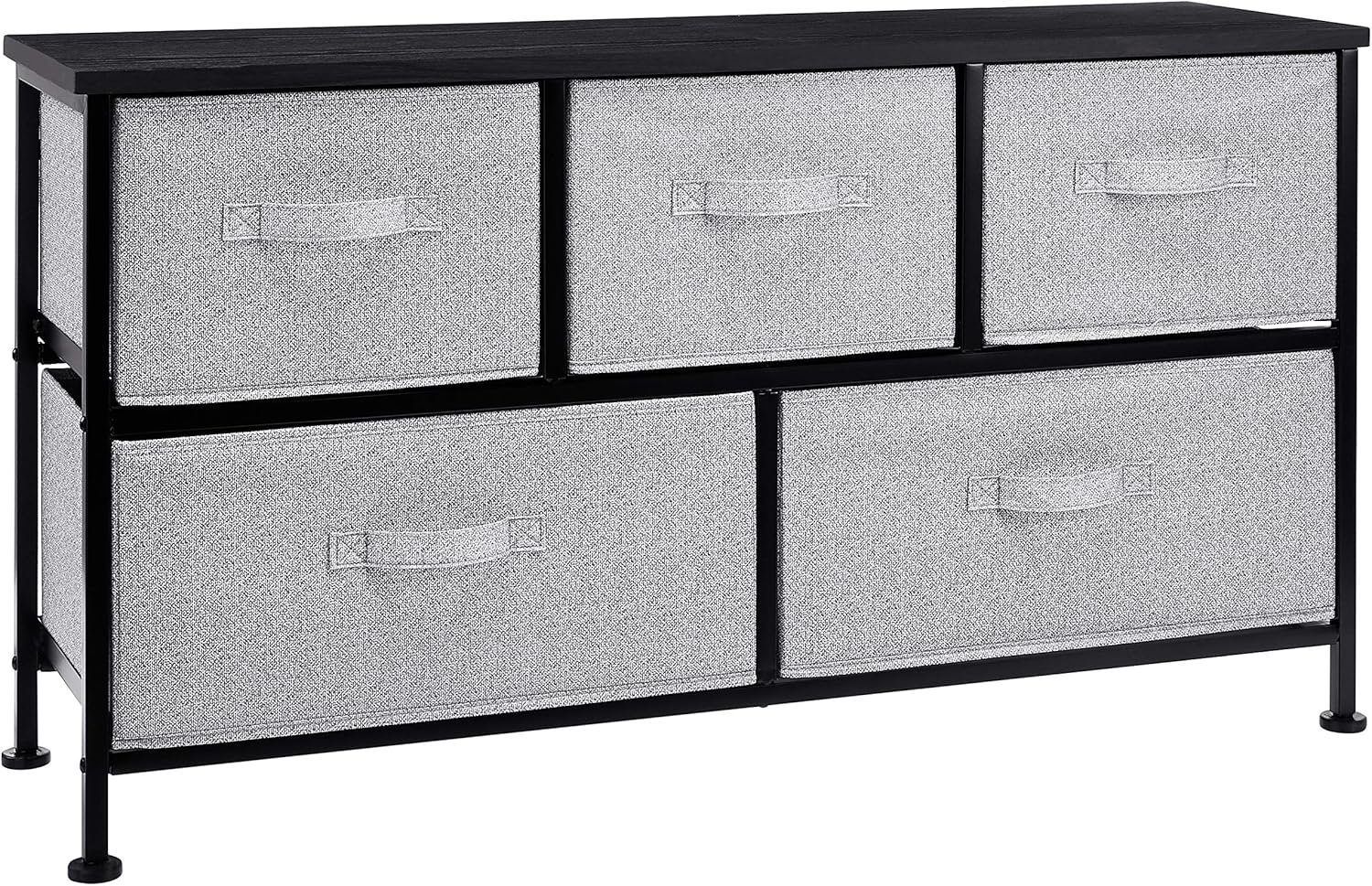 Upgrade your storage solutions with the Amazon Basics Extra Wide Fabric 5-Drawer Storage Organizer, designed for bedrooms, closets, and playrooms. Boasting a sturdy steel frame, stylish laminated wood top, and easy pull-out fabric drawers, this organizer combines durability with a modern, minimal look that fits any décor. Lightweight and versatile, it’s perfect for keeping your space tidy and clutter-free. Discover a practical and stylish storage option from the Amazon Basics Store today.