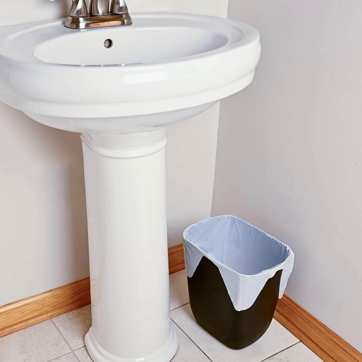 These compact trash liners are designed for 4 gallon or smaller bins, making them ideal for bathrooms, bedrooms, and office baskets.